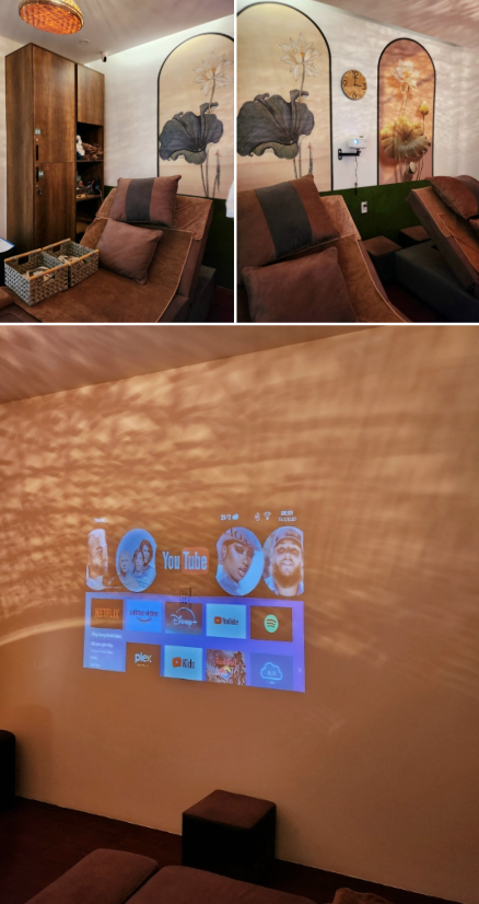 Soft aroma scent, calming BGM, a wide massage bed, and even YouTube to watch during treatments!