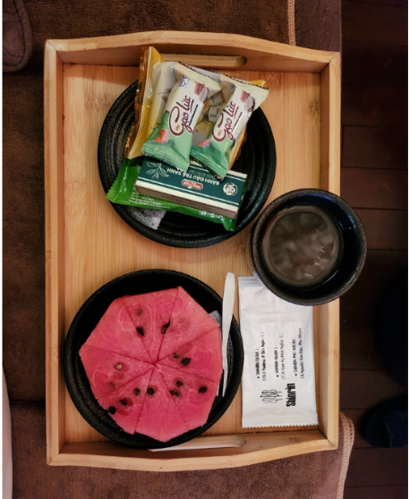 I came after eating, so I couldn’t finish the snacks and watermelon they served — such a pity because they were delicious!
